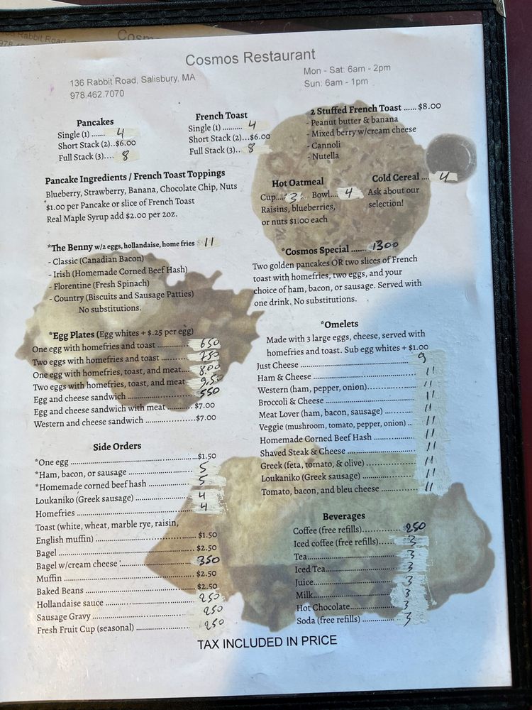 Welcome to Cosmos Restaurant, a charming diner nestled in Salisbury, MA, serving up delightful New American breakfast and brunch. With a cozy atmosphere and a casual vibe, it’s the perfect spot for families and friends alike.
