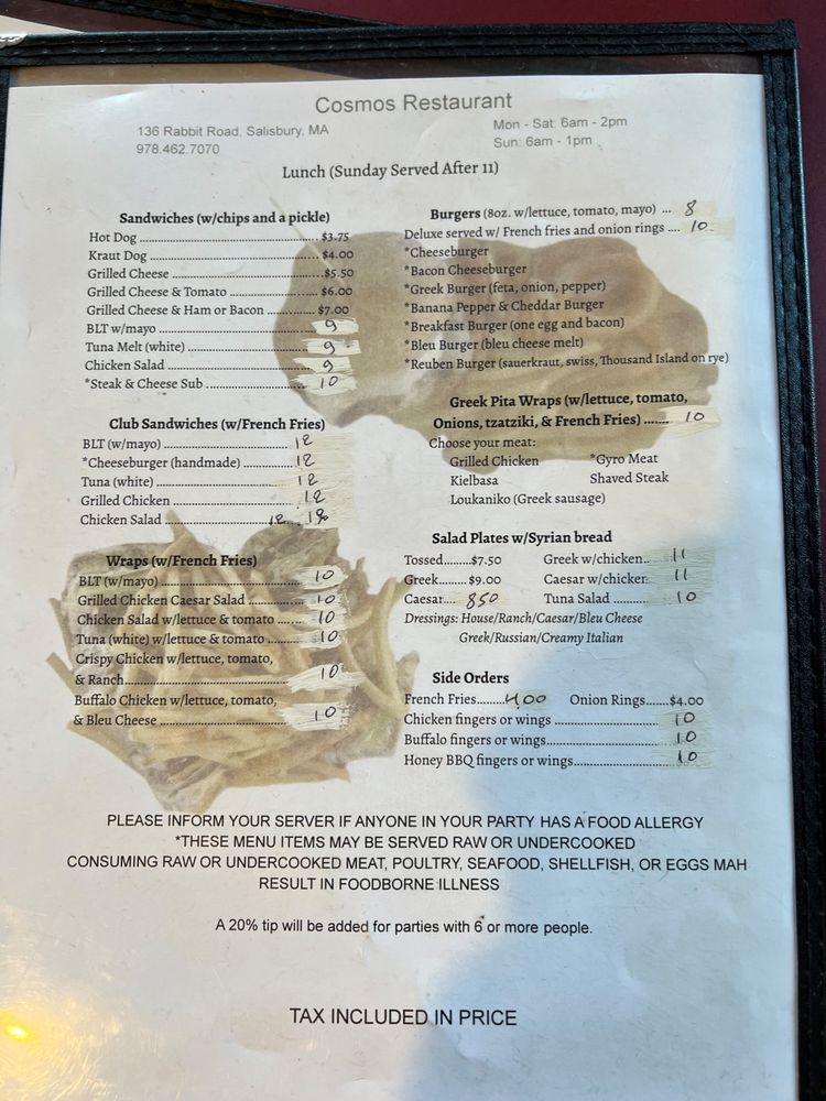 Cosmos Restaurant Menu